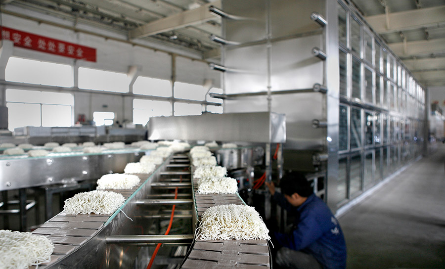 老化后的米粉自動(dòng)進(jìn)入蒸粉機進(jìn)行進(jìn)一步熟化,使最終產(chǎn)品在沖泡時(shí)不混湯;